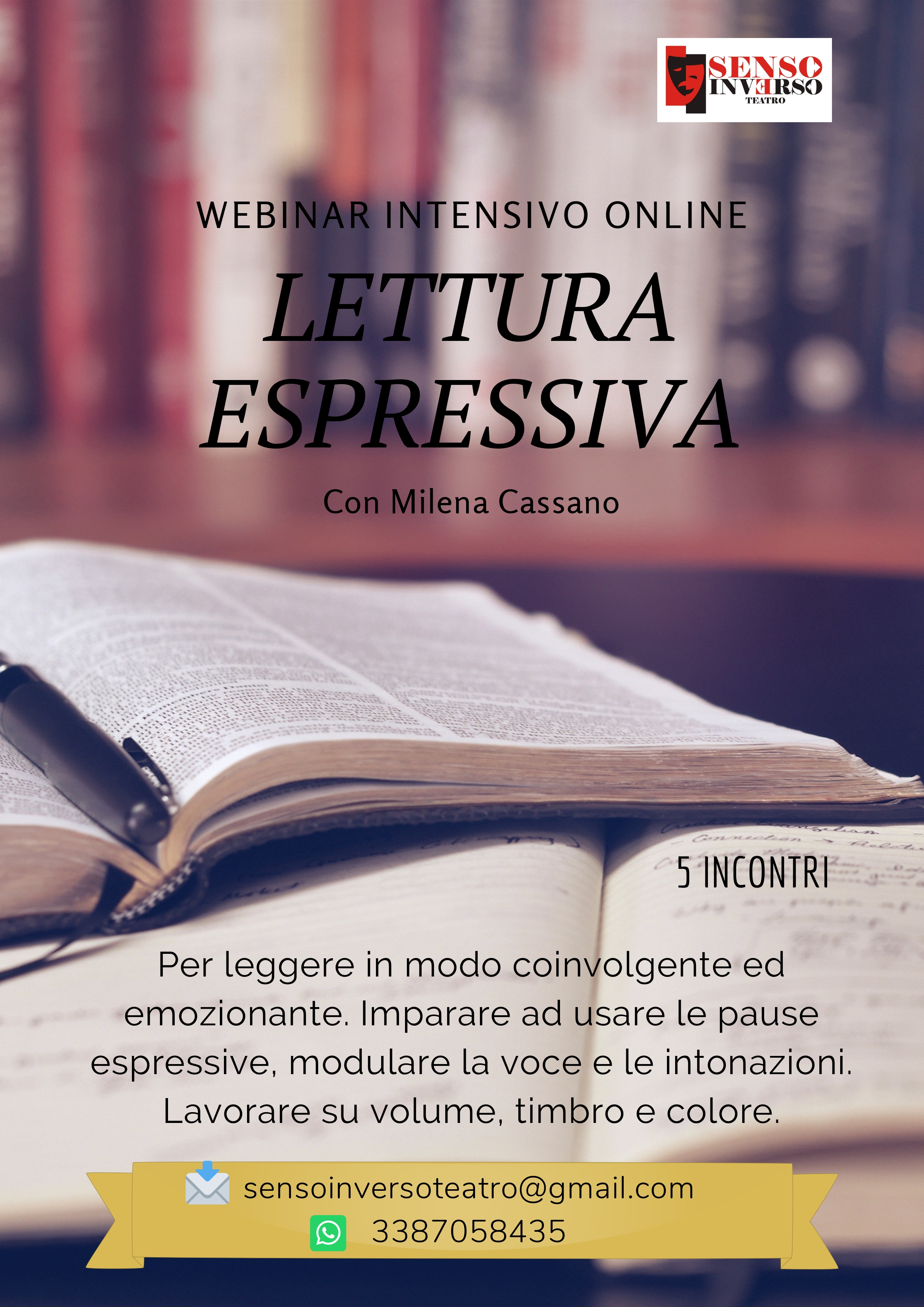L’aiuto di slide e video ti faciliterà la comprensione della parte teorica e l’interazione con la tutor, Milena Cassano, renderà il tutto molto più chiaro attraverso un’ abbondante sezione dedicata alla pratica. Ti eserciterai a leggere e parlare ad alta voce, utilizzando esercizi ad hoc per gestire il ritmo, il volume, le pause, i toni e tutti gli ingredienti per una corretta comunicazione e una prosodia chiara e neutrale. Imparerai ad utilizzare i vari colori della voce. Tutto questo restando comodamente a casa tua, sulla piattaforma Zoom. Sarà necessario solo un computer, una web cam, un microfono ed una buona connessione internet.